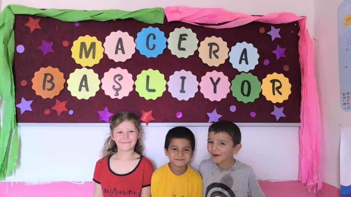 Yardibi Ortaoba İlkokulu yeni öğrencilerini karşılıyor.